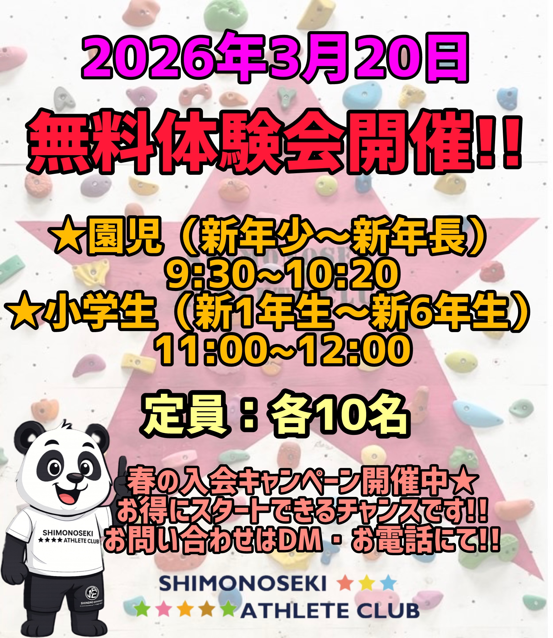 2026年3月20日祝日!! 無料体験会を行います!!